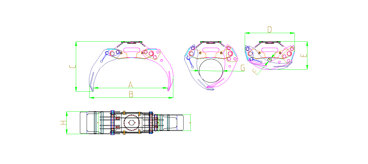 - Working principle: It is powered by the hydraulic system of the excavator, which drives the oil cylinders to expand and contract to realize the opening and closing actions of the grapple claws, thereby grabbing and moving objects.